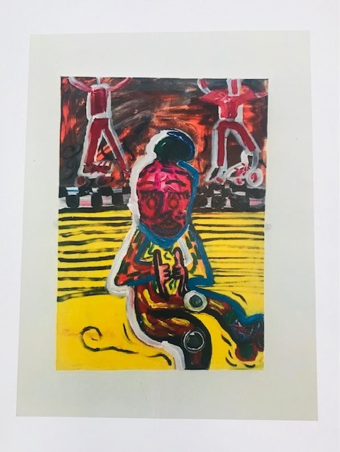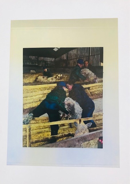 In the second studio the works of Caroline Dewing were well spaced and eye catching and she had a comments book and I noticed several people expressing interest in seeing more of her work. The figurative work of Kristine Bandzinaite was also displayed in this studio. Only a few works but they were very large. I walked along the corridors where there was also work displayed. It was a natural circuit around the quadrangle and the other 2 studios so you did not miss any student’s work. Anna Ford’s large oil paintings of cowes in a farmyard setting were shown to their best advantage in the corridor setting with separate spaces for 2 large works. It could have been dark but the artificial lighting made sure this student was not at any disadvantage.
