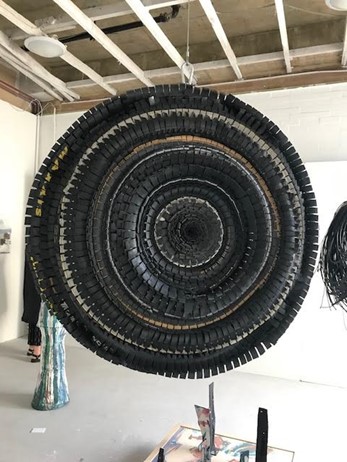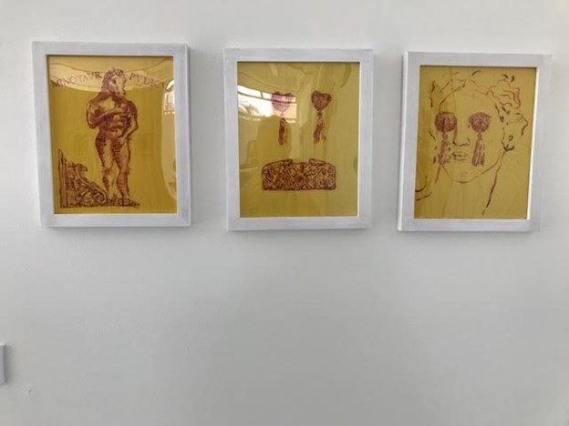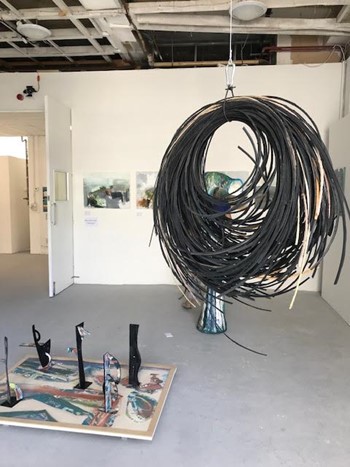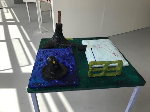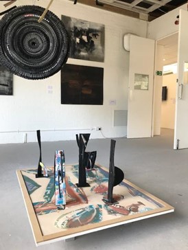 The first room was a little crowded and the works had no clear connection with each other which reinforced the haphazard nature of the displays. The rubber tyre in the centre of the room focussed one’s attention and benefitted from the ample room afforded to it but somewhat dwarfed the exhibits on the low tables nearby. The student’s works were not always labelled and any artist’s statement was not always easy to find.